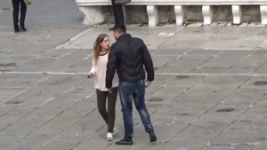 Nikolina: Sedela sem v kavarni na trgu. Poleg mene je bilo kar nekaj ljudi in vse se je dogajalo dobesedno pred njihovimi očmi. Bili so resnično gledalci dogajanja. V prvem zaigranem prizoru, ko je bil fant verbalno agresiven do dekleta, je nastal molk, prava turobna, srhljiva tišina. Posebej takrat, ko je fant odvrgel telefon. V trenutku, ko je dekle zagrabil za vrat, pa je en gospod nemudoma vstal. To se je zgodilo v nekaj sekundah. Vsi so obmolknili. V ozračju je zavladala tista mučna napetost. Vsi so pozorno gledali, vendar nihče ni ničesar rekel in tudi nihče se razen tistega gospoda ni premaknil.